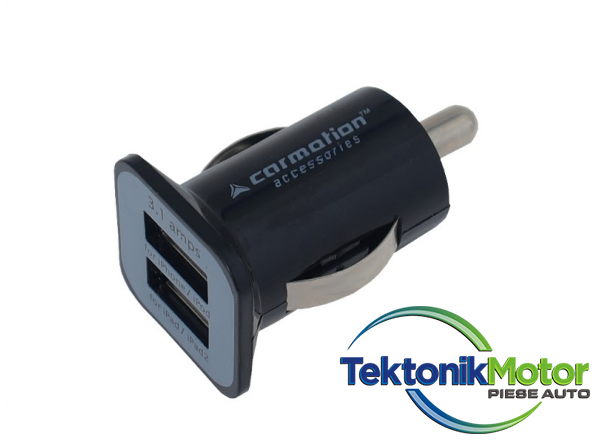 Incarcator auto atasat la priza brichetei 12V si 24V. 2 prize USB 3100mA încorporate.Proiectat pentru încarcare: telefoane, tablete, laptopuri, MP3, MP4 si navigatie.
