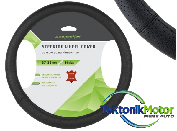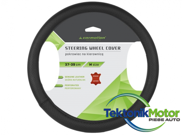 Placuta la atingere, husa din piele potrivita pentru volan de 37-39 cm. Acesta va îmbunatati confortul condusului si va reîmprospata aspectul interiorului oricarei maini într-un mod simplu si rapid.37x39x4 cm