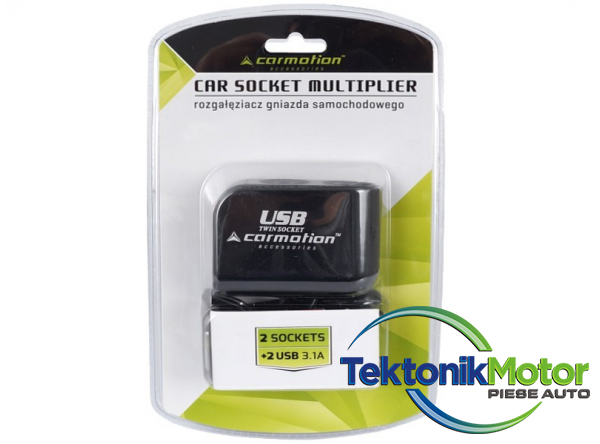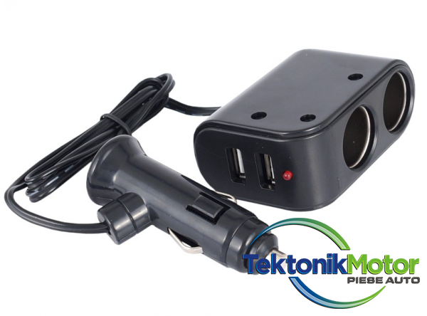 Distribuitor de înalta rezistenta. Are 2 intrari USB si 2 intrari pentru bricheta. Sarcina maxima 3.1A.Înainte de a conecta dispozitivele, verificati consumul de energie combinat al acestora pentru a evita supraîncarcarea prizei brichetei.