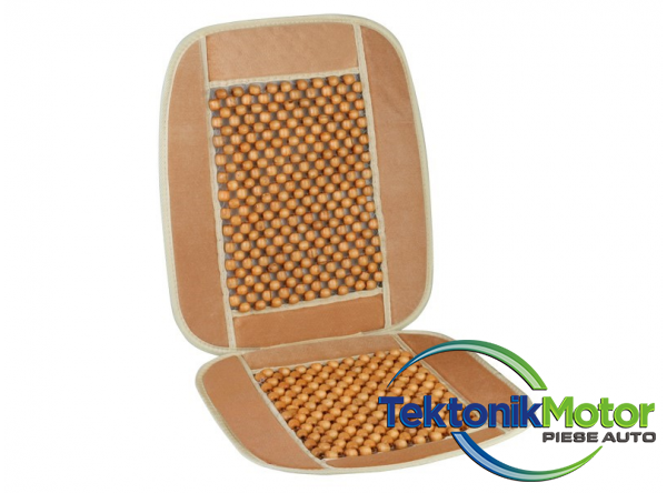 Husa scaun cu bile confortabila pentru scaunul soferului sau al pasagerului. Fabricat din margele de lemn bej si finisat cu velur rezistent si estetic. Pentru a asigura confort si utilizare îndelungata, margelele au fost conectate cu un fir de pescuit puternic, iar întregul a fost captusit cu o plasa.Principalele avantaje: