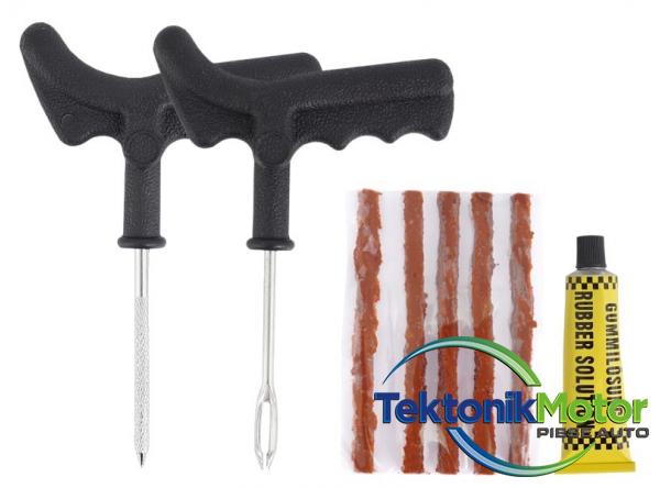 Un kit de reparatii senzational pentru fixarea anvelopelor fara camera. Va va permite sa efectuati o reparatie de urgenta a unei anvelope perforate rapid si ieftin. Imediat dupa ce reparatia este finalizata si pierderea de aer din anvelopa este completata, va puteti continua calatoria. Ideal pentru fixarea anvelopelor de masini si motociclete.Setul include:
