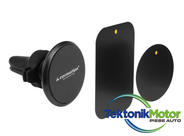 Suport telefon magnetic atasat la grila de admisie a aerului. In plus, are suporturi speciale pentru cablu. Setul include doua placi metalice pentru lipirea dispozitivelor cu carcasa nemetalic.96085 4CARS