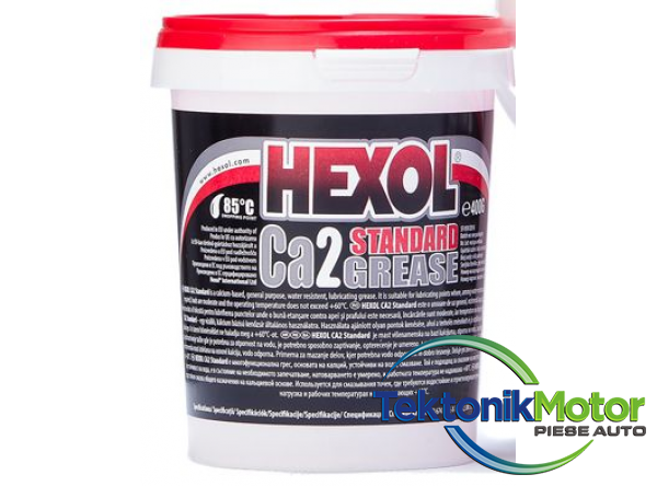 Hexol Ca2 Standard este o unsoare de uz general, rezistenta la apa, pe baza de calciu. Recomandat a fi folosita pentru lubrifierea punctelor unde o buna etansare contra apei si prafului este necesara, încarcarile sunt moderate, iar temperatura nu depaseste +60°C.Dropping Point: 85°C • ISO 6743-9: L-X-BAHA 2 • DIN 51502: K2C-20 • NLGI 2